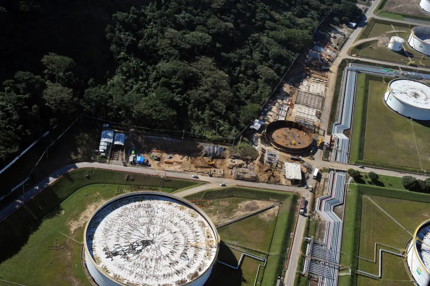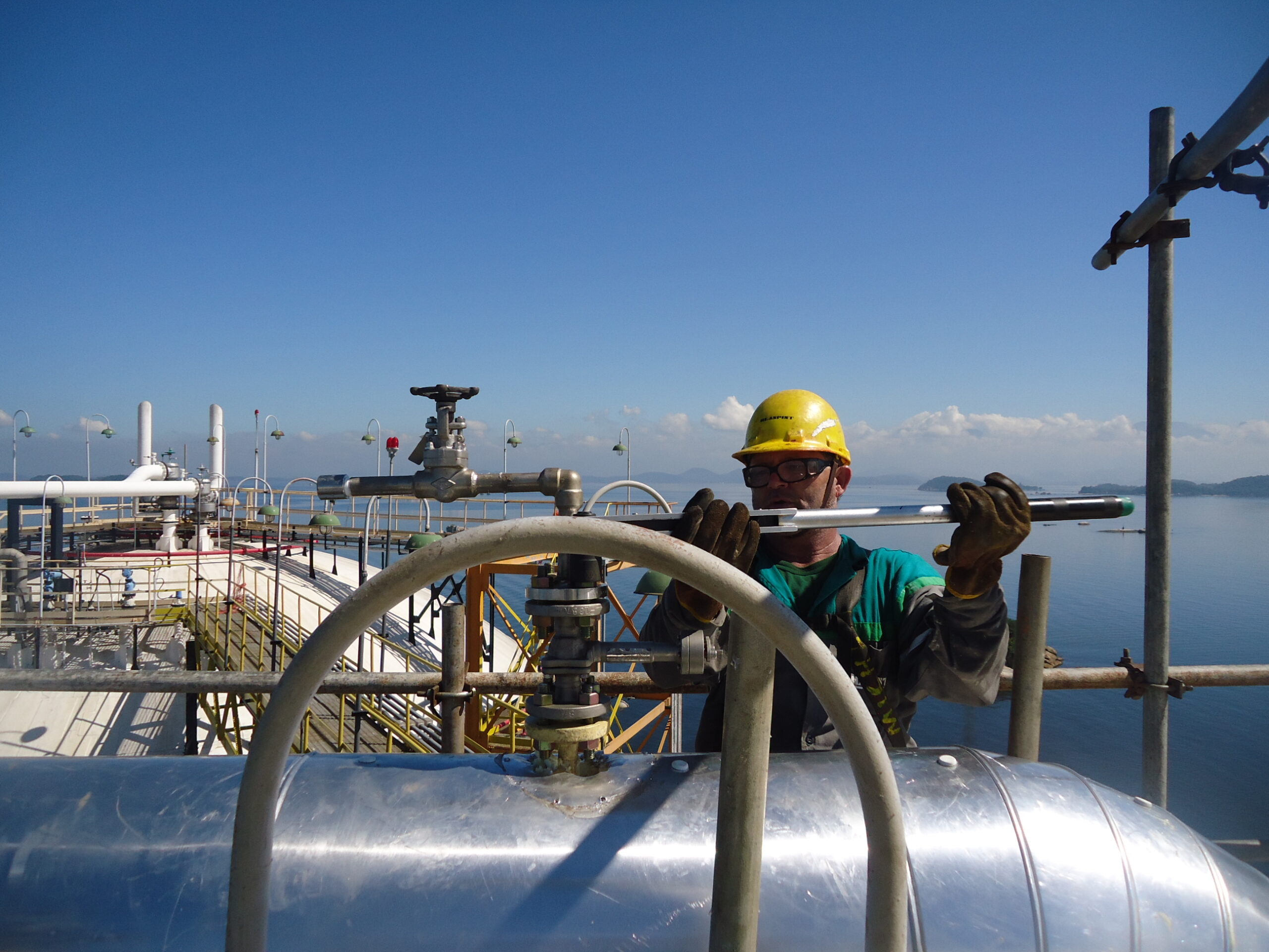 Montagem de tubulações no gasômetro do Terminal de Ilha Redonda.